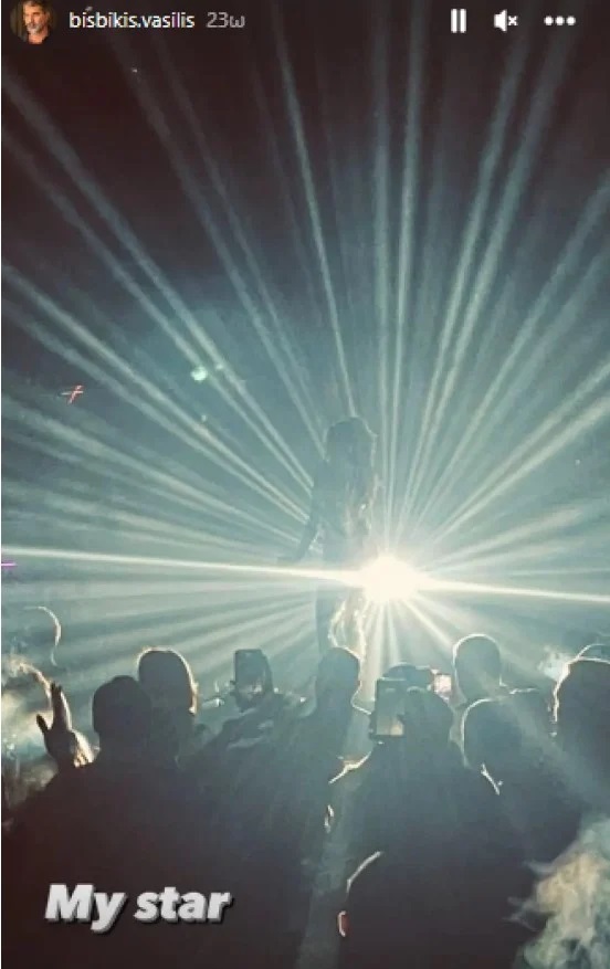Ο ίδιος δημοσίευσε ένα στιγμιότυπο σε story στον προσωπικό του λογαριασμό στο Instagran με την τραγουδίστρια στην πίστα. Πάνω στη φωτογραφία, αποθέωσε την αγαπημένη του, γράφοντάς της: «Η σταρ μου».