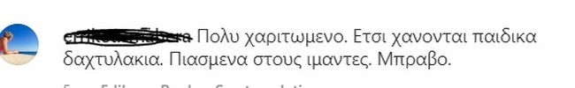 Bροχή αρνητικών σχολίων δέχτηκε η σύζυγος του Σάκη Τανιμανίδη, Χριστίνα Μπόμπα με αποτέλεσμα να αναγκαστεί να κατεβάσει ανάρτησή της στον προσωπικό της λογαριασμό στο Instagram με φωτογραφία των παιδιών της, να κάθονται στον ιμάντα των αποσκευών του αεροδρομίου. Πολλοί το θεώρησαν ιδιαίτερα επικίνδυνο για τις δυο της κόρες.