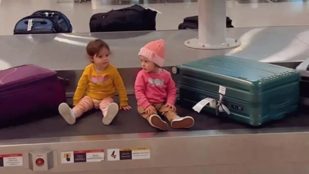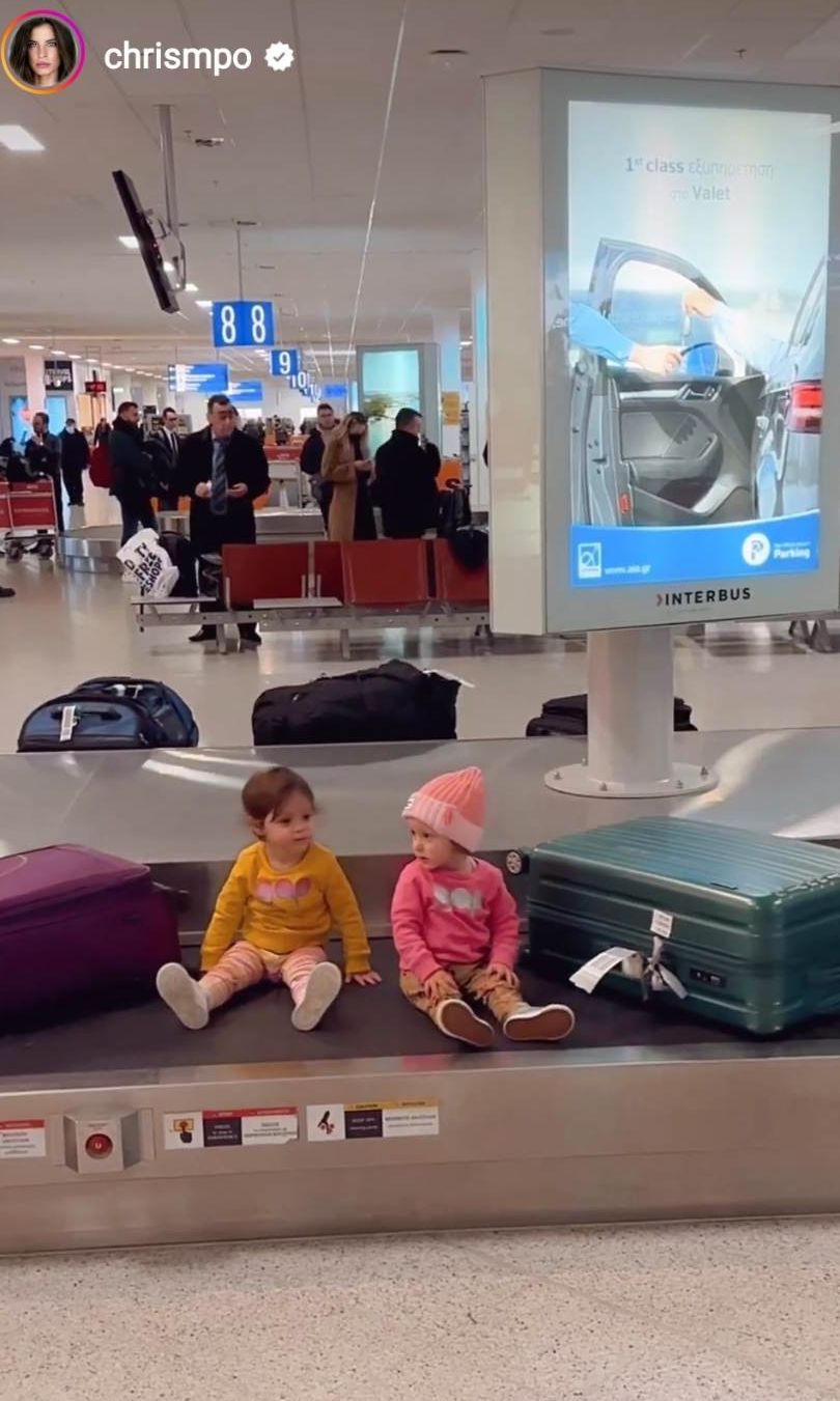 Η Χριστίνα Μπόμπα επιστρέφοντας από τη Θεσσαλονίκη δημοσίευσε βίντεο στο οποίο φαίνονται οι δίδυμες κόρες της Αριάνα και Φιλίππα να κάνουν βόλτα στον ιμάντα των αποσκευών με τις βαλίτσες.