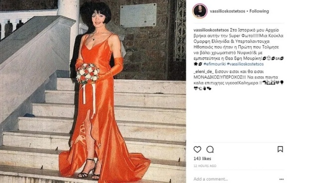 «Στο Ιστορικό μου Αρχείο βρήκα αυτήν την Super Φωτο!!!!!Μια Κούκλα Όμορφη Ελληνίδα & Υπερταλαντούχα Ηθοποιός που ήταν η Πρώτη που Τόλμησε να βάλει χρωματιστό Νυφικό! & με εμπιστεύτηκε η Θεά Έφη Μουρίκη! #efimouriki #vassilioskostetsos», είχε γράψει ο Βασίλειος Κωστέτσος στη λεζάντα της φωτογραφίας.