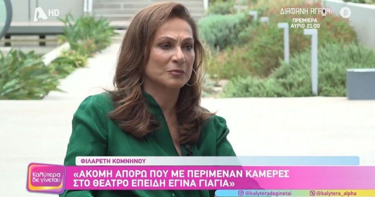 «Ήμουν η “πρώτη” του Χριστόφορου Παπακαλιάτη του 2000», δηλώνει η αγαπημένη ηθοποιός, Φιλαρέτη Κομνηνού. Μιλώντας στο «Καλύτερα Δε Γίνεται» για την καριέρα της, τη σχέση της με τον γιο της, Γιώργο Παπαγεωργίου, αλλά και για τον έρωτα.