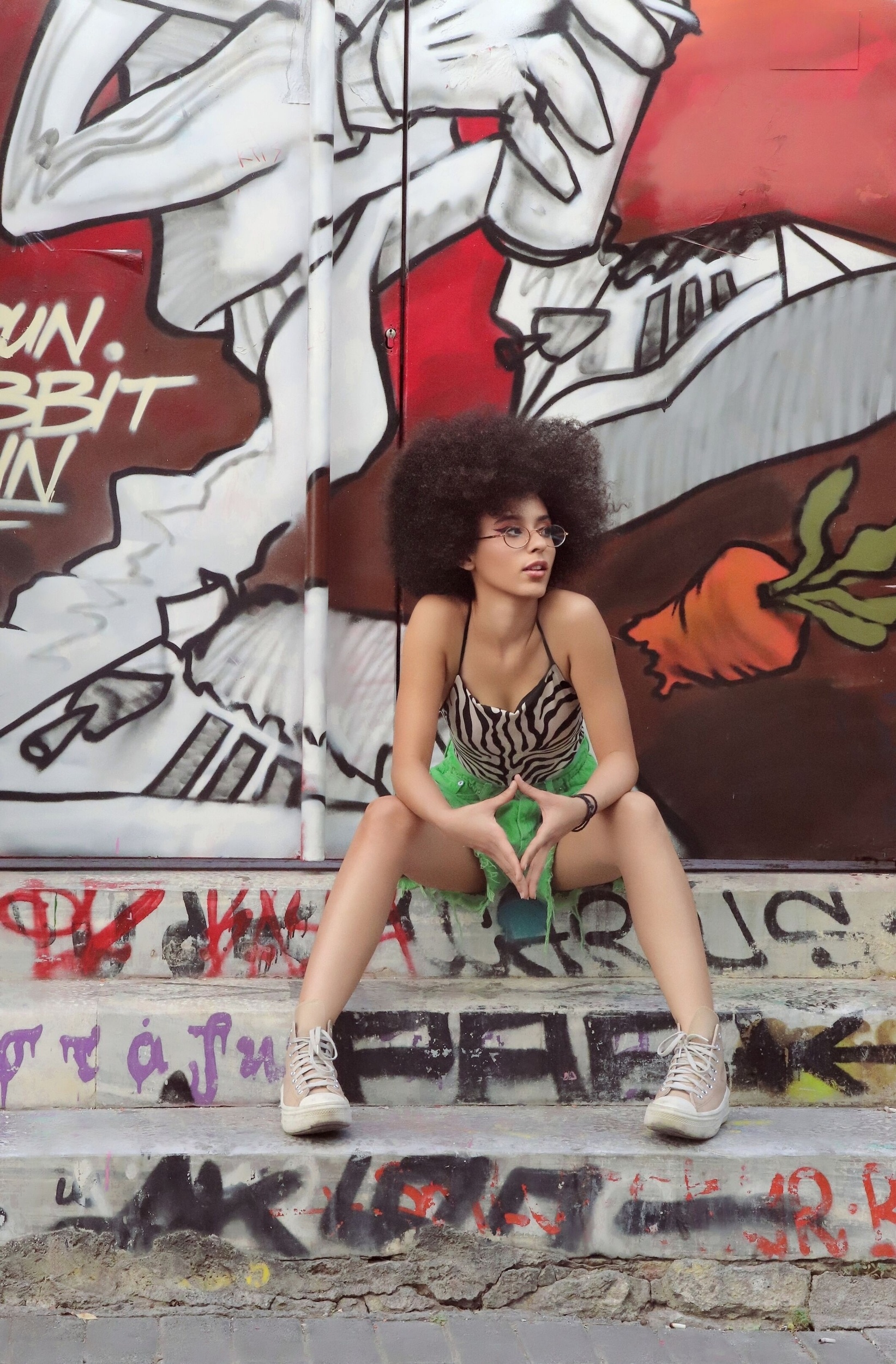 Μετά τη συνέντευξη περπατήσαμε στα στενά του Ψυρρή για να τραβήξουμε φωτογραφίες. Έξω από ένα στούντιο τατουάζ κοντοστάθηκε και, γελώντας με την ίδια της την αυθόρμητη ερώτηση, ρώτησε τον τατουατζή αν κάνει και μαλλιά. «Μόνο τατουάζ βαράω!» της απάντησε εκείνος και της έδωσε χαμογελώντας την κάρτα του.