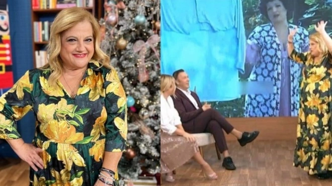 Ειδικότερα, η ηθοποιός θυμήθηκε μία σκηνή από το εορταστικό επεισόδιο του σίριαλ «Δις Εξαμαρτείν», στην οποία δεν μπορούσε να σηκώσει τα λόγια τα πικρά από την πεθερά της, για αυτό το έριξε στο τραγούδι και τον χορό.