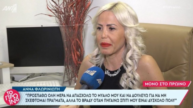 Όσο περνάει ο καιρός αρχίζω και νιώθω και την ανασφάλεια ότι είμαι μόνη μου και δεν έχω στήριγμα, γιατί τα έχω φορτωθεί όλα εγώ. Αρχίζω να έχω την ανάγκη να έχω έναν άνθρωπο δίπλα μου, να με στηρίζει έστω ψυχολογικά», εξομολογήθηκε η Άννα Φλωρινιώτη και συνέχισε: