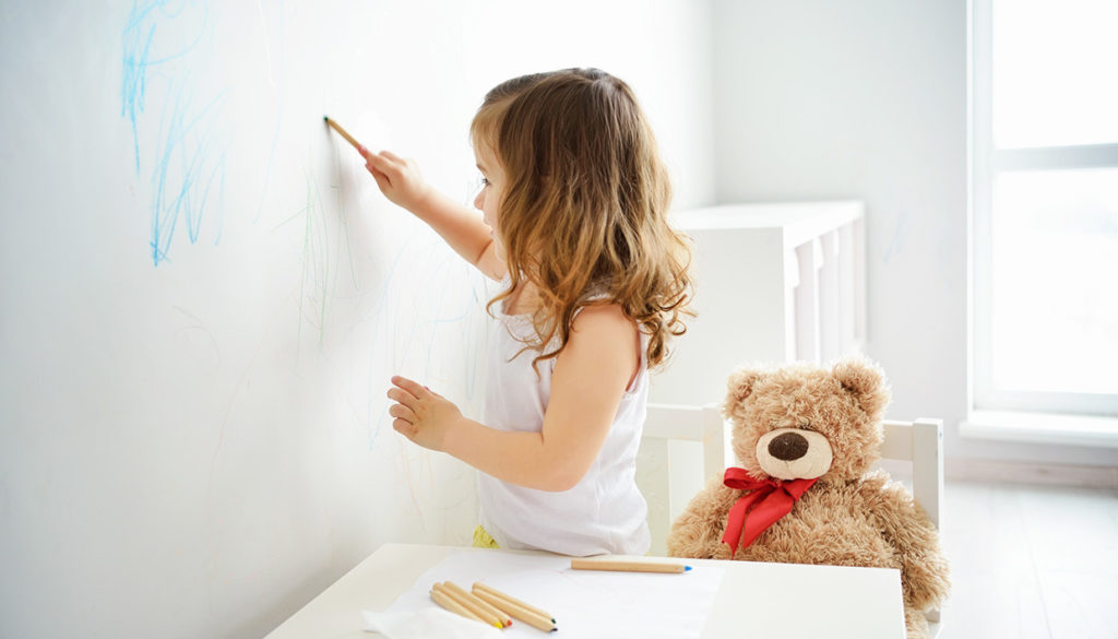 Μία οδοντόβουρτσα με λίγο λευκό ξύδι είναι ότι χρειάζεσαι. Τρίψε ελαφρά τους λεκέδες από τις μπογιές των παιδιών στους τοίχους.