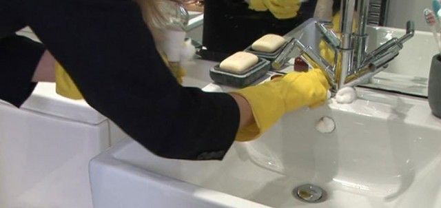 Το πρωί καθάρισε τον φούρνο με καθαριστικό και ξέπλυνε τον με νερό.