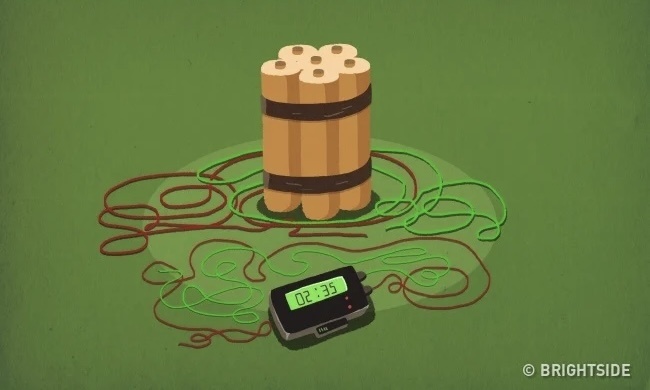 Ποτέ: τα καλώδια της βόμβας δεν είναι συνδεδεμένα με τον χρονομετρητή.