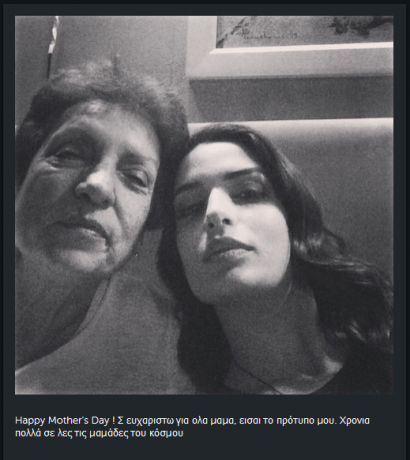 Πριν δύο χρόνια η Άντζελα Δημητρίου μέσα από τα social media μας είχε συστήσει για πρώτη φορά τη μητέρα της. Μάλιστα, τη φωτογραφία συνόδευσε με μια τρυφερή αφιέρωση. “Θέλω να ευχαριστήσω τον άνθρωπο που με έφερε στον κόσμο και με μεγάλωσε με αξίες και αρχές που με βοηθάνε να περπατάω το μονοπάτι της ζωής μου. Μητέρα σ’ αγαπώ πολύ και χάνομαι στην αγκαλιά σου” είχε γράψει.