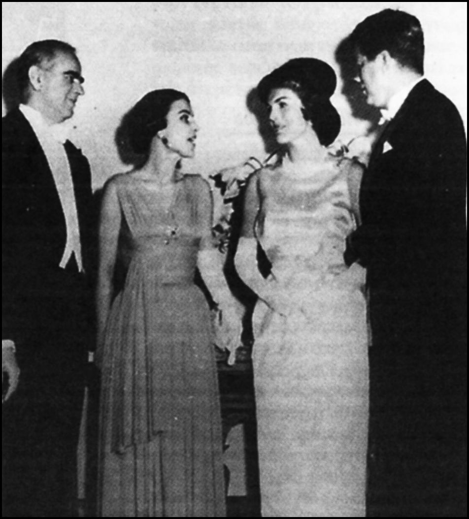 Η «Ελληνίδα Τζάκι», όπως την αποκαλεί ο αμερικανικός τύπος, φορά τουαλέτα του Jean Dimitre Verginie Dessès, του βασιλιά της μουσελίνας, σε γραμμές λιτές, μα τόσο φροντισμένες που θυμίζουν «ζωντανή Καρυάτιδα», όπως αποθεώνουν οι δημοσιογράφοι. Την ίδια ώρα ο Φιντέλ Κάστρο ανάβει το πούρο του, στην Αβάνα, κατατροπώνοντας εισβολή στην Κούβα αντιφρονούντων με την ευλογίες της αμερικανικής πολιτικής και ο κομαντάτε Τσε, χαμογελούσε ειρωνικά έτοιμος για να συναντήσει τον θάνατο και τον μύθο.