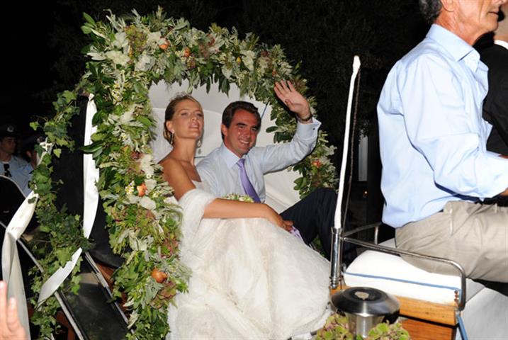 Ο Νικόλαος κατέφθασε δια θαλάσσης από το Πόρτο Χέλι, όπου διανυκτέρευσε στο σπίτι που διατηρεί η οικογένειά του, με το σκάφος τους «Αφροέσσα» και η νύφη, Τατιάνα Μπλάτνικ με μία ανθοστολισμένη άμαξα, όπως αρμόζει άλλωστε και στο νησί.