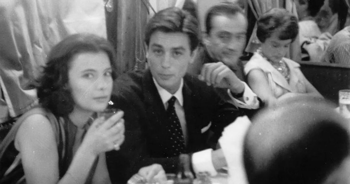 Η φωτογραφία περιλαμβάνει τρεις μεγάλες προσωπικότητες του κινηματογράφου: την Τζένη Καρέζη, τον Αλέν Ντελόν, και τον Λουκίνο Βισκόντι. Η Τζένη Καρέζη ήταν μια από τις αγαπημένες ηθοποιούς της Ελλάδας, γνωστή για το ταλέντο και τη γοητεία της. Ο Αλέν Ντελόν, ένας από τους πιο εμβληματικούς Γάλλους ηθοποιούς, και ο διάσημος Ιταλός σκηνοθέτης Λουκίνο Βισκόντι, γνωστός για την αισθητική του σινεμά, συμπληρώνουν το σκηνικό.