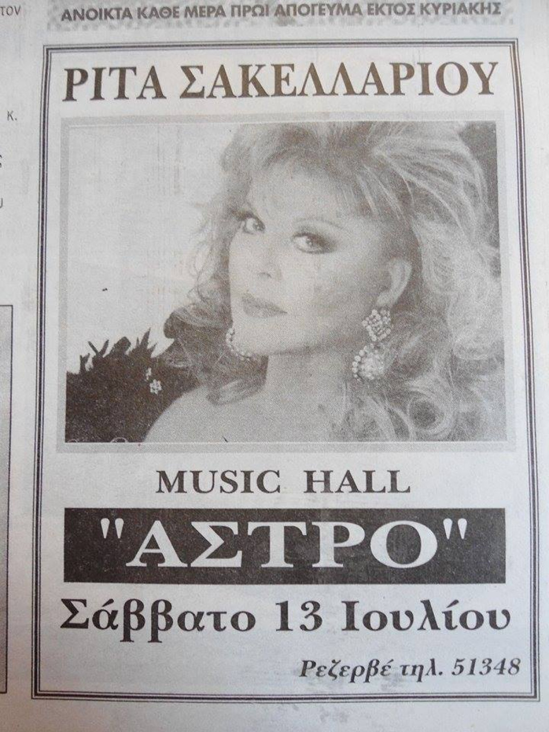 Η γνωστή σε όλους μας τραγουδίστρια Ρίτα Σακελλαρίου... η πολυτάραχη ζωή της, η ανεκπλήρωτη της επιθυμία και το άδοξο τέλος της.