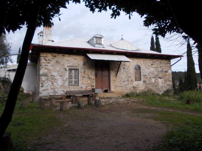 Κελί Αγίου Παϊσίου: Η αυλή με τα ελαιόδεντρα και τα κλήματα
