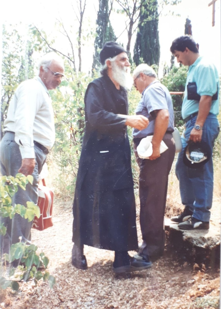 Επάνω στο μονοπάτι δέσποζε ένας σωρός ξύλα. Τα είχε τοποθετήσει εκεί, για να μη φαίνεται όταν κυκλοφορούσε από το κελί στο εργαστήριο. Κατηφορίζοντας προς το Κελί δεξιά, κάτω από μια ελιά, ήταν ένα τραπεζάκι και δυο τρία πρόχειρα καθίσματα, το θερινό Αρχονταρίκι του.