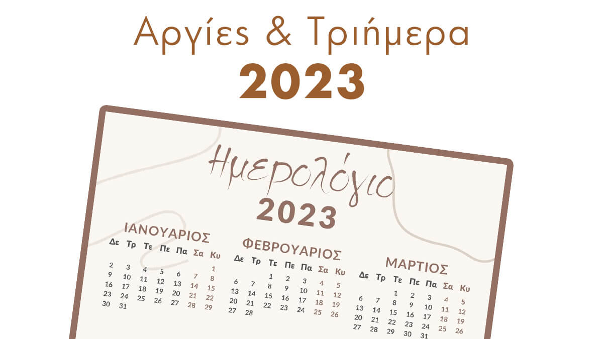 Σε μερικές ώρες απο τώρα λέμε αντίο στην παλιά χρονιά και υποδεχόμαστε με ισιοδοξία το 2023. Πολλοί όμως είναι ήδη εκείνοι που ανοίγουν το ημερολόγιο ψάχνοντας να βρουν τις αργίες για τη νέα χρονιά που θα δηλωσουν την ευκαιρία για ξεκούραση αλλά και για την οργάνωση μιας εκδρομής.