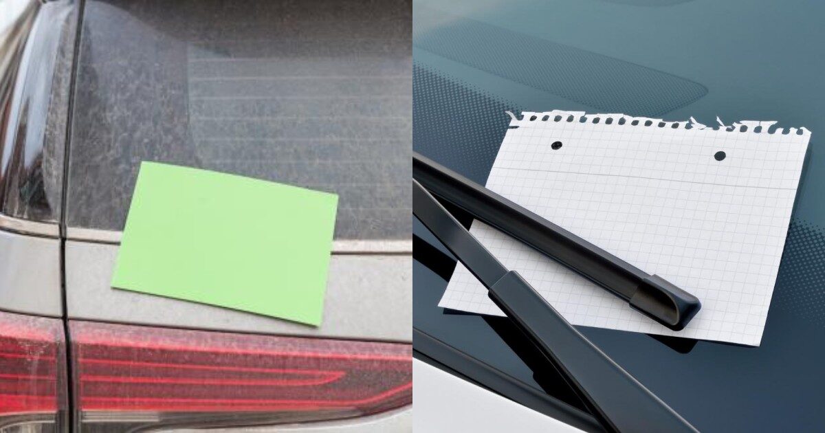 Προσπαθήστε λοιπόν να μείνετε ψύχραιμοι αν δείτε κάποιο τέτοιο χαρτί κολημένο στο όχημα σας, και να προλάβετε να κλειδώσετε τις πόρτες πρωτού πάτε να το διαβάσετε. Είναι η πιο εύκολη λύση για να αποφύγετε τους κλέφτες.