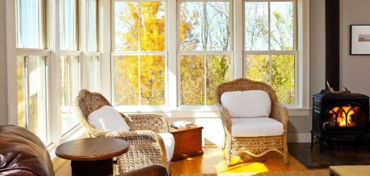 – Σε μια γωνία του σαλονιού υπάρχουν μεγάλα παράθυρα που χαρίζουν υπέροχη θέα έξω. Η σόμπα δίνει στιλ στον χώρο.
