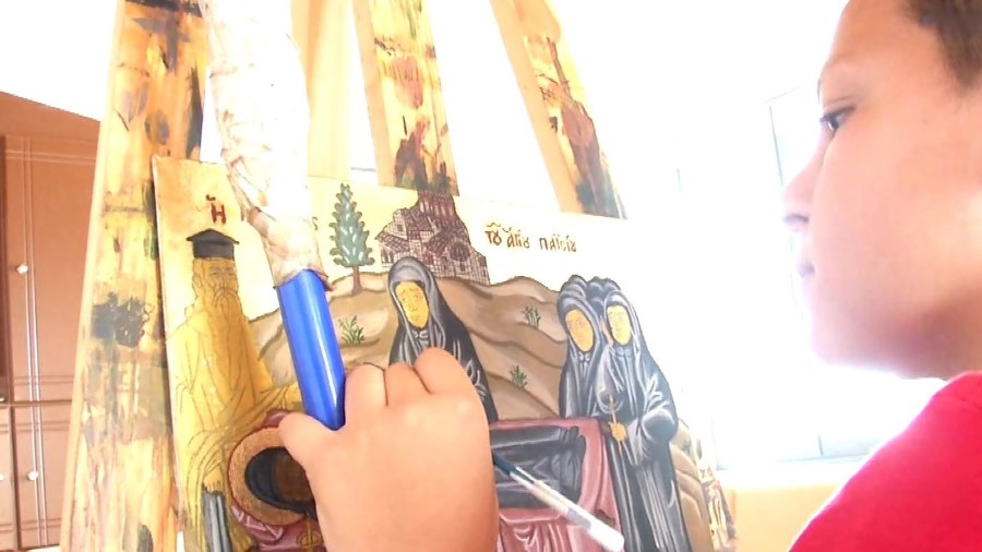 Ο μικρός αυτός καλλιτέχνης έχει μεράκι για την αγιογραφία.