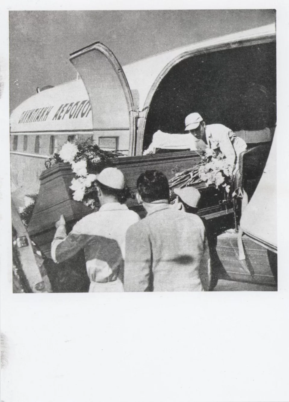 Η σορός του Καζαντζάκη φτάνει στο Ηράκλειο της Κρήτης / εκδόσεις Διόπτρα