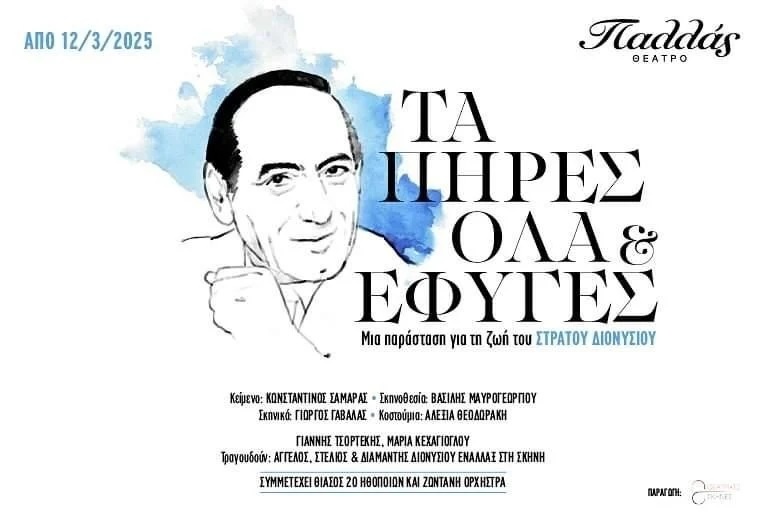 «Τα πήρες όλα και έφυγες» θα έχει τίτλο η παράσταση που θα ανέβει τον Μάρτιο στο θέατρο Παλλάς αφιερωμένη στη μυθιστορηματική ζωή του σπουδαίου Στράτου Διονυσίου τον οποίο θα υποδυθεί ο Γιάννης Τσορτέκης.