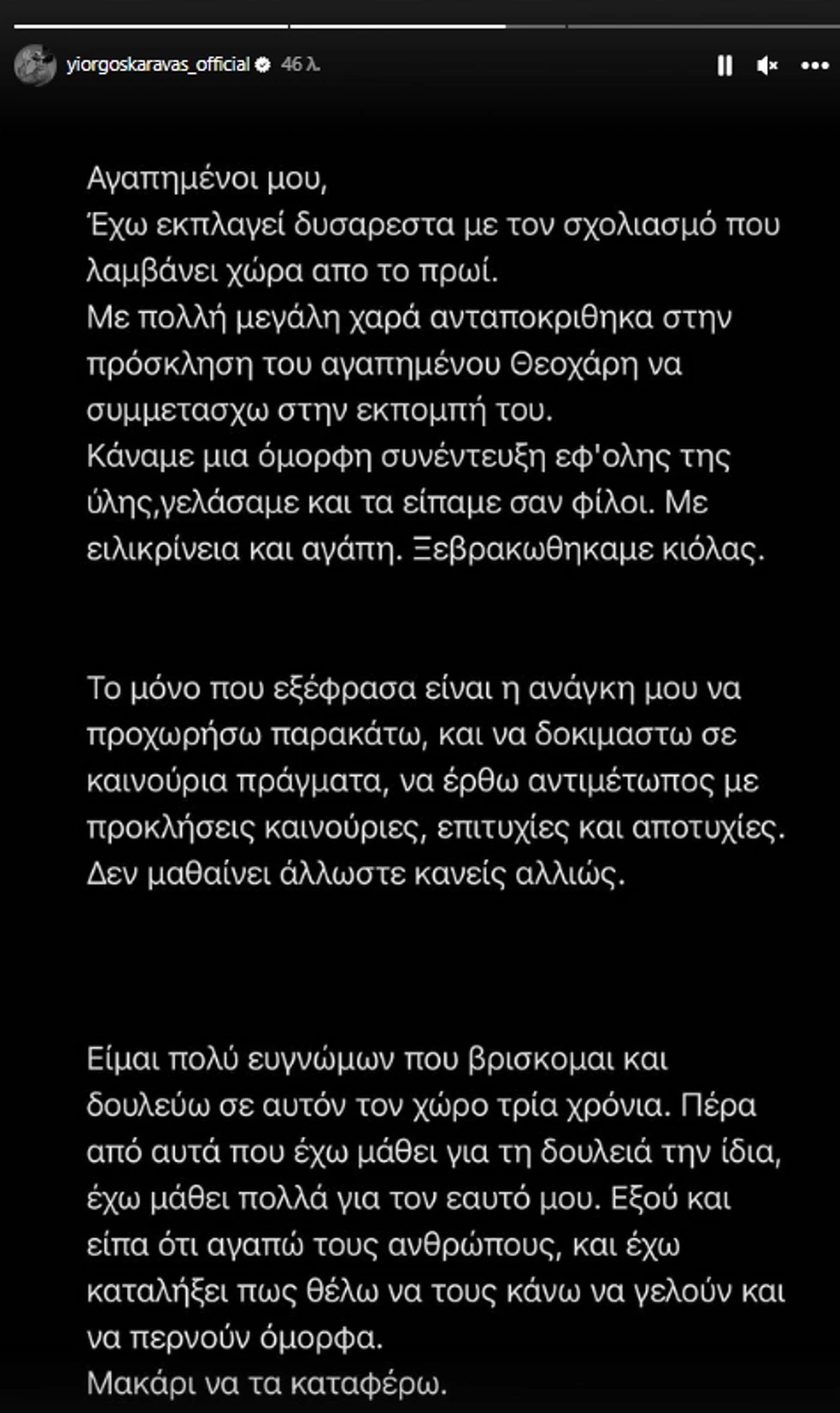 Η απάντηση του Γιώργου Καράβα στις αντιδράσεις