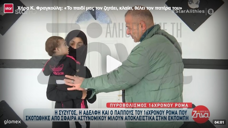 Η σύζυγος του 16χρονου Ρομά Κώστα Φραγκούλη έκανε τις πρώτες της δηλώσεις μετά τον χαμό του αγαπημένου της και μεταξύ άλλων αναφέρθηκε στην απόφαση να αφεθεί ελεύθερος ο αστυνομικός που τον πυροβόλησε στο κεφάλι.