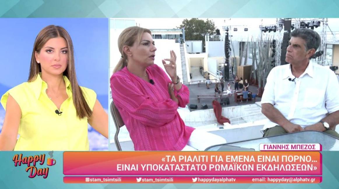 «Δε θα έπαιρνα ποτέ στη δουλειά ηθοποιό που έχει παρέμβει αισθητικά στο σώμα της. Δεν θα έρθει σε εμένα αυτή η κοπέλα, δεν υπάρχει περίπτωση. Έχει τόσες ευκαιρίες να πάει αλλού, που δεν θα το κάνει. Μάλλον δεν παίρνει τον εαυτό της στα σοβαρά. Εγώ δεν χρειάζεται να την αποπάρω, έχει καταδικάσει τον εαυτό της από πριν», είπε αρχικά ο Γιάννης Μπέζος και συμπλήρωσε: