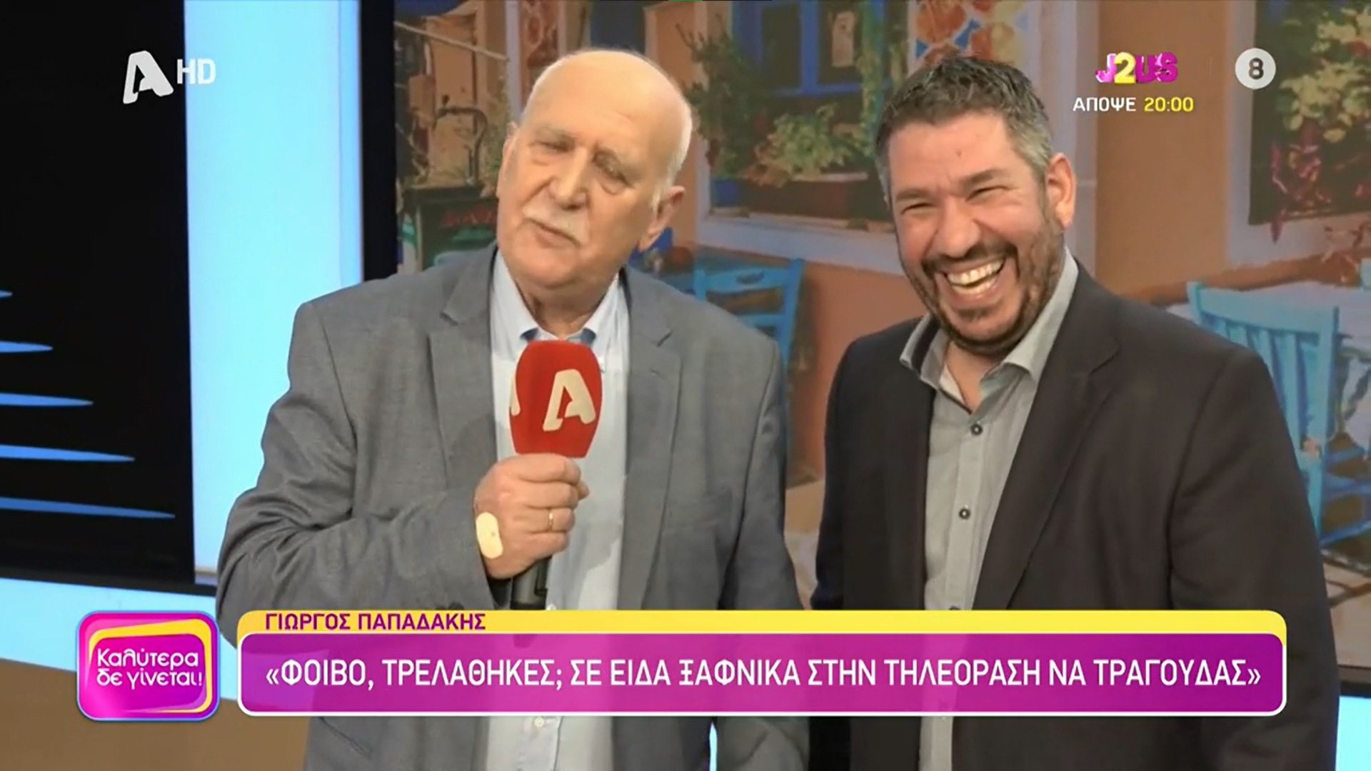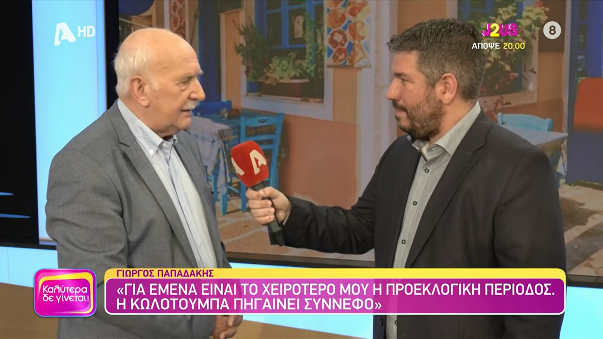Ο Γιώργος Παπαδάκης παραχώρησε συνέντευξη στο «Καλύτερα Δε Γίνεται» και αναφέρθηκε μεταξύ άλλων στην τηλεοπτική του χρονιά με τη Μαρία Αναστασοπούλου, την προεκλογική περίοδο, τον έρωτά του με τη σύζυγό του και σχολίασε τη συμμετοχή του γιου του, Φοίβου, στο J2US.