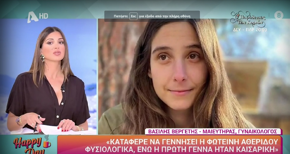 Η ανάρτηση της Φωτεινής Αθερίδου για τη γέννα του δεύτερου παιδιού της με φυσιολογικό τοκετό μετά από καισαρική στο πρώτο παιδί της, σχολιάστηκε από τη Σταματίνα Τσιμτσιλή στην εκπομπή της “Happy Day”. Μάλιστα, κατά την αναφορά της στην προσωπική της εμπειρία, η παρουσιάστρια δήλωσε: