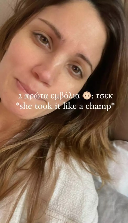 «2 πρώτα εμβόλια: τσεκ. Τα αντιμετώπισε σαν πρωταθλήτρια», έγραψε η Μαίρη Συνατσάκη κάτω από την ανάρτησή της.