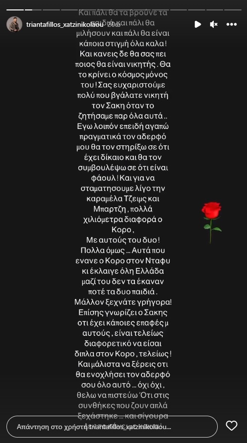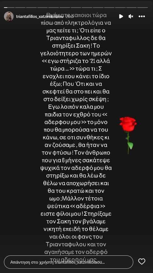 Οι αναρτήσεις του Τριαντάφυλλου για τον Σάκη Κατσούλη