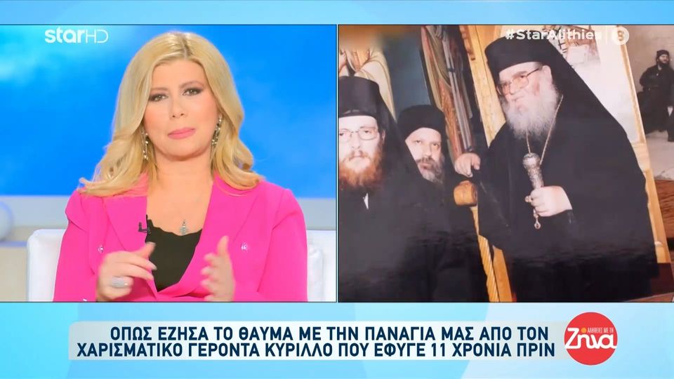 Σαν χθες, 30 Μαρτίου, εκοιμήθη πριν 11 χρόνια ο Γέροντας Κύριλλος της Ιεράς Μονής Οσίου Δαυίδ. Η δημοσιογράφος και παρουσιάστρια Ζήνα Κουτσελίνη, με κατάνυξη και φανερά συγκινημένη μοιράστηκε με τους τηλεθεατές της εκπομπής «Αλήθειες με τη Ζήνα» το θαύμα που έζησε με την Παναγία Μας από το χαρισματικό Γέροντα Κύριλλο.