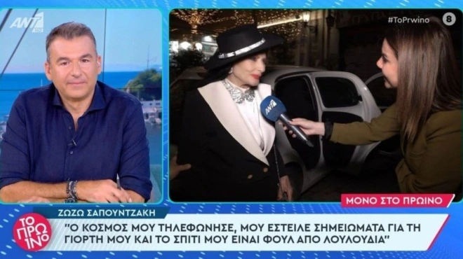 Η Ζωζώ Σαπουντζάκη έκανε δηλώσεις στη δημοσιογράφο Αναστασία Ζάρκα από την εκπομπή «Το Πρωινό» με τον Γιώργο Λιάγκα και ξεκαθάρισε τις φήμες για την πώληση του σπιτιού της στην Κινέτα.