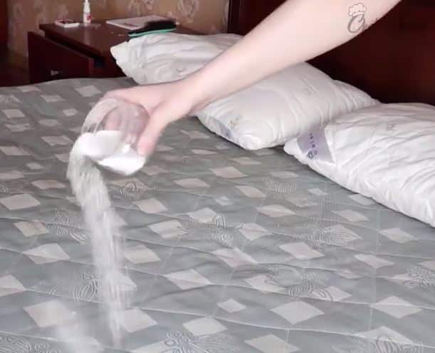 Απλώστε μαγειρική σόδα (σε ικανοποιητική ποσότητα) επάνω σε όλη την επιφάνεια του στρώματος. Έπειτα, τρίψτε τη με το χέρι ή με μια βούρτσα έτσι ώστε να καλύψει όλο το στρώμα. Αφήστε τη σόδα να δράσει για 2-3 ώρες και έπειτα καθαρίστε την επιφάνεια με την ηλεκτρική σκούπα, για να τραβήξει τα υπολείμματα.
