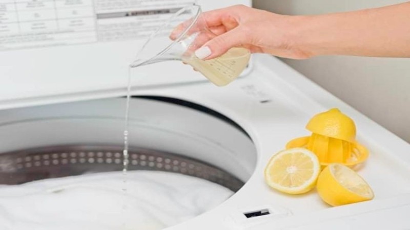 Ο χυμός λεμονιού, γνωστός για τις απολυμαντικές και αρωματικές του ιδιότητες, αποτελεί σημαντικό μέρος αυτού του σπιτικού κόλπου για να κάνετε το πλυντήριο ρούχων σας πιο καθαρό.