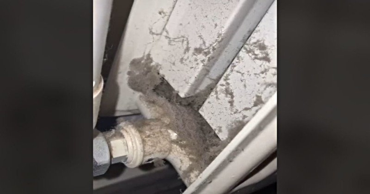Στη συνέχεια, παίρνει το πιστολάκι μαλλιών της και το περνάει κατά μήκος της κορυφής του καλοριφέρ της, μέχρι οι σβώλοι της συσσωρευμένης σκόνης να πέσουν έξω από το κάτω μέρος του θερμαντήρα.