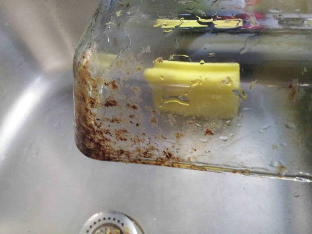 Αν στο πυρέξ κολλήσουν τα καμένα λίπη και τα λάδια τότε δεν βγαίνουν εύκολα ακόμα και να τα βάλουμε στο πλυντήριο πιάτων ή να τα τρίψουμε με το σύρμα από το σφουγγάρι.