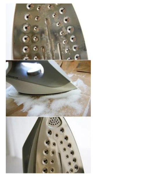 Μετά ρυθμίζουμε το σίδερο στην υψηλότερη θερμοκρασία στην επιλογή ατμού και στη συνέχεια απλά σιδερώνουμε πάνω από το αλάτι. Η βρωμιά κολλάει στο αλάτι και το σίδερο γίνεται καθαρό και λαμπερό.