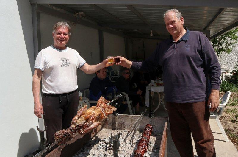 Σκηνικό πιο παλιό κι απ’ την Ακρόπολη: σορτσάκι, φανέλα αμάνικη, μπίρα στο ένα χέρι, πιρούνα με κοψίδι στο άλλο και στο τρανζιστοράκι ή Πουλόπουλο ή Καλατζή ή Ζαμπέτα. Ισχυρίζεται ότι «έχει ξυπνήσει αξημέρωτα και ψήνει». Η άδεια πιατέλα δίπλα του και το μοτεράκι που γυρίζει μόνο του το αρνί μαρτυρούν την αλήθεια.