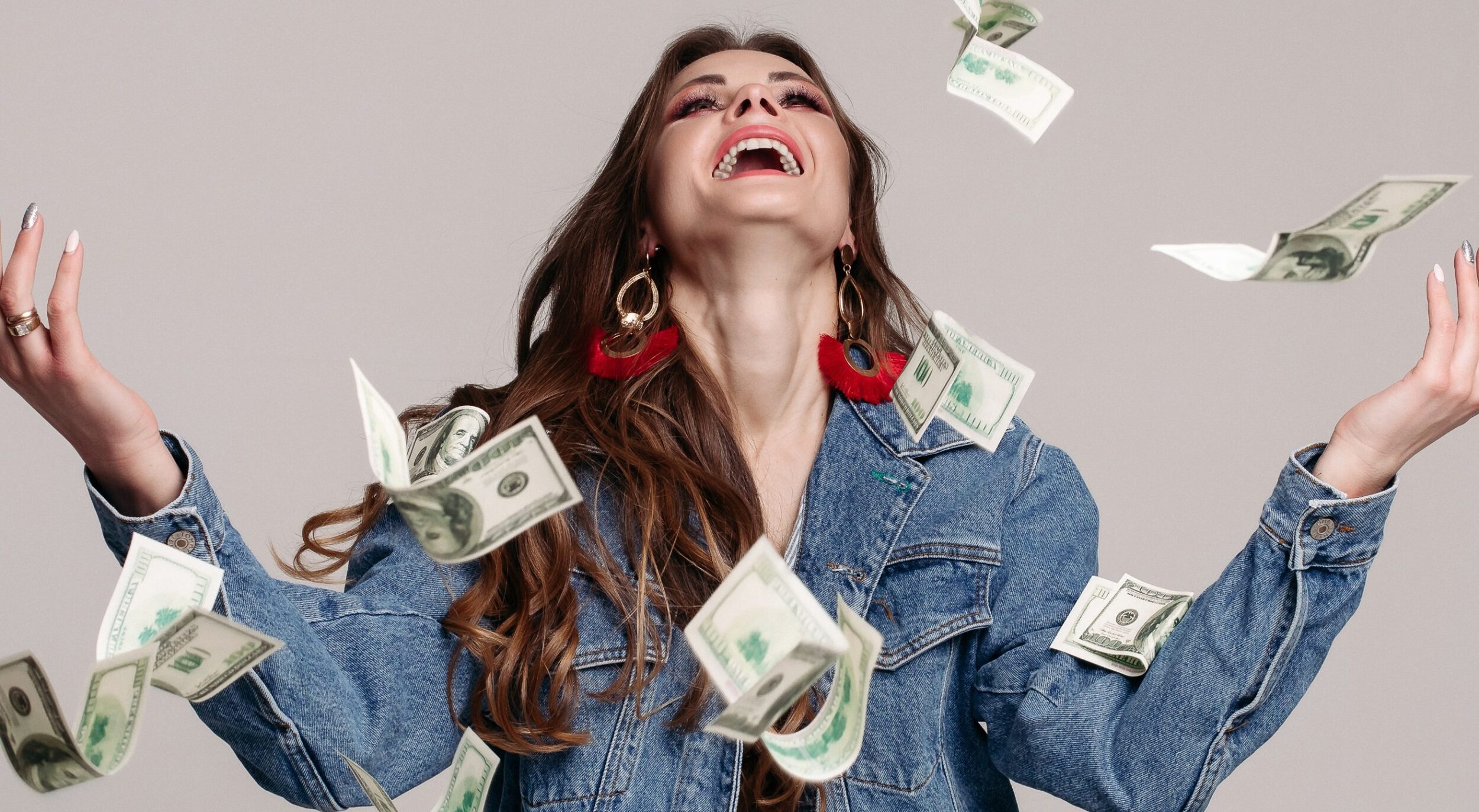 Γυναίκα κρατά δεσμίδα με χρήματα