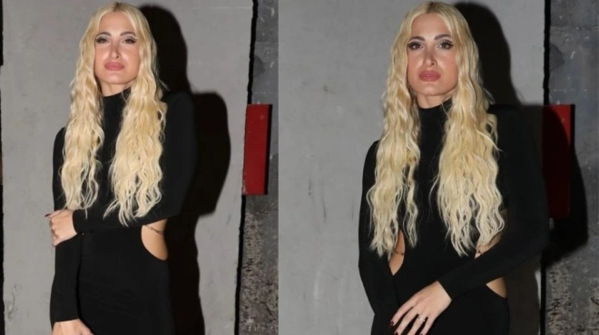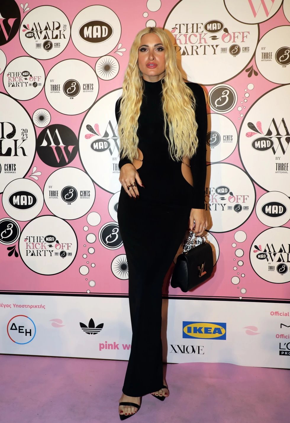 Η influencer και επιχειρηματίας επέλεξε ένα εφαρμοστό μαύρο φόρεμα με cut outs και χρυσαφί διακριτικές αλυσίδες στα πλάγια.