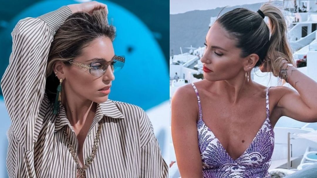 Τις καλοκαιρινές της διακοπές στη Σαντορίνη απολαμβάνει η Αθηνά Οικονομάκου.