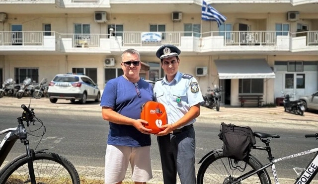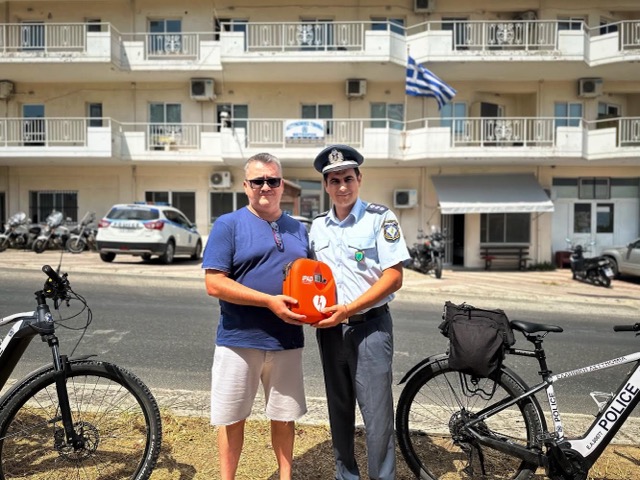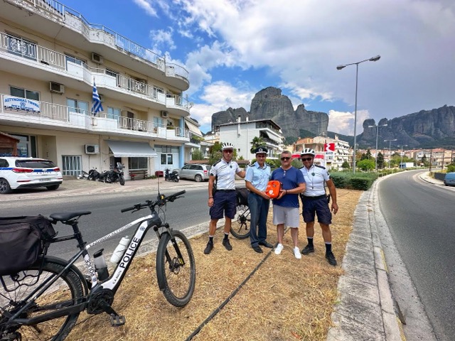 Μια κίνηση “Ζωής” από τους αδερφούς Νικό και Δημήτρη Πλακιά αποτελεί η δωρεά ενός ημιαυτόματου εξωτερικού απινιδωτή της εταιρείας ΟΕΜ CU Medical IPAD προς το αστυνομικό τμήμα Μετεώρων και συγκεκριμένα για τους ποδηλάτες αστυνομικούς της Τουριστικής Αστυνομίας, που από φέτος περιπολούν καθημερινά στην περιοχή των Μετεώρων.