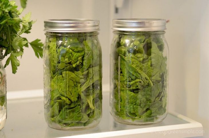 Το καλύτερο δοχείο για την αποθήκευση των πράσινων λαχανικών και των μυρωδικών σας, είναι τα γυάλινα βαζάκια που κλείνουν αεροστεγώς. Τα κρεμμύδια, τα σκόρδα, αλλά και ο μαϊντανός σας, θα διατηρήσουν τη γεύση τους για έναν ολόκληρο μήνα. Τα πράσινα λαχανικά σας δε θα χαλάσουν, δε θα μαραθούν, δε θα ξεραθούν, ούτε θα χάσουν το άρωμά τους.