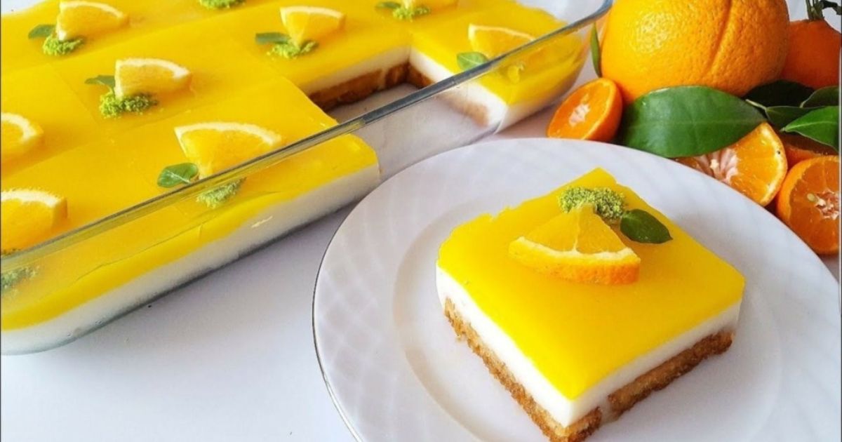 Δροσερό γλυκό ψυγείου με μπισκότα, κρέμα βανίλιας και κρέμα πορτοκαλιού