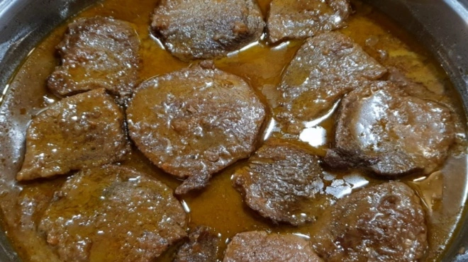 Προς το τέλος του βρασμού αλατοπιπερώνετε και ρίχνετε το λεμόνι. Αφού βράσει το κρέας, το βγάζετε σε σανίδα κοπής και το κόβετε σε λεπτές φέτες. Το ξαναζεσταίνετε μέσα στο ζουμί του και στραγγίζετε τη σάλτσα.