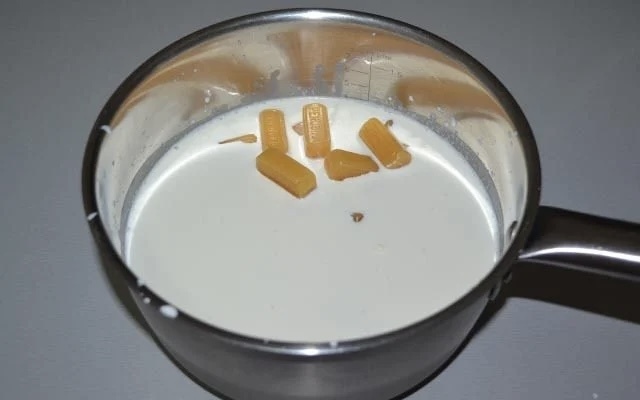 - – Ζεσταίνουμε το γάλα και την κρέμα γάλακτος.