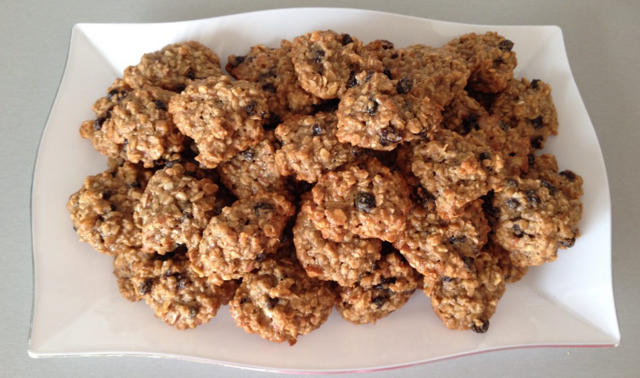 Αδειάστε το μείγμα με τη βοήθεια ενός κουταλιού -μία κουταλιά κάθε φορά- σε ένα φύλλο λαδόκολλας και αφήστε το μέχρι τα μπισκότα να «δέσουν», περίπου 15 λεπτά.