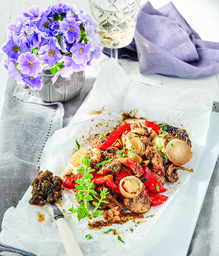Μανιτάρια γκιούλμπασι, με πέστο λιαστής ντομάτας και κεφαλοτύρι