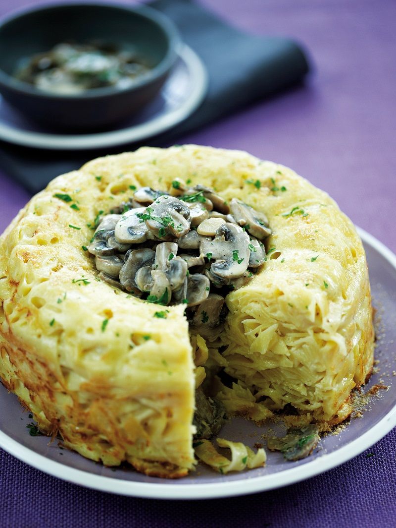 Εντυπωσιακό σουφλέ ζυμαρικών με πλούσια σάλτσα μανιταριών, που ταιριάζει στο κυριακάτικο και το γιορτινό τραπέζι.